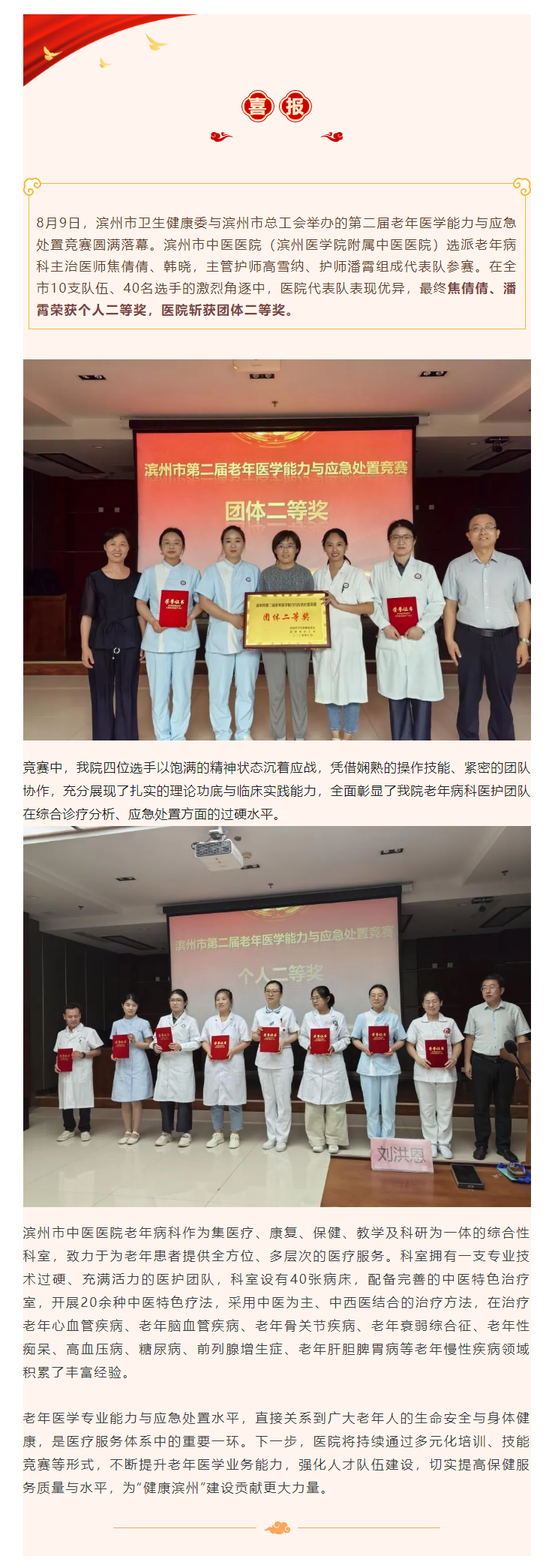 喜报 | 滨州市中医医院老年病科在第二届老年医学能力与应急处置竞赛中斩获佳绩