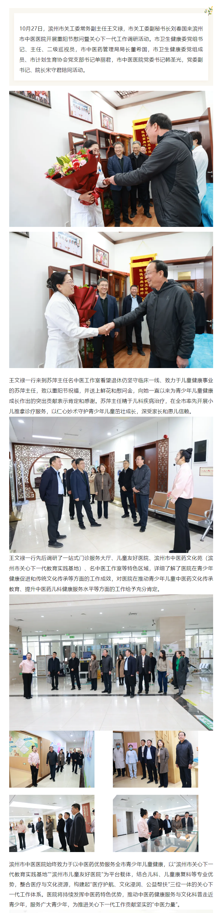 滨州市关工委来滨州市中医医院开展重阳节慰问暨关心下一代工作调研活动