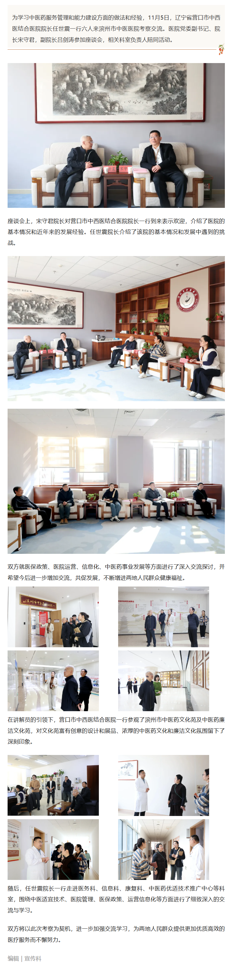辽宁省营口市中西医结合医院院长任世震一行来我院考察交流
