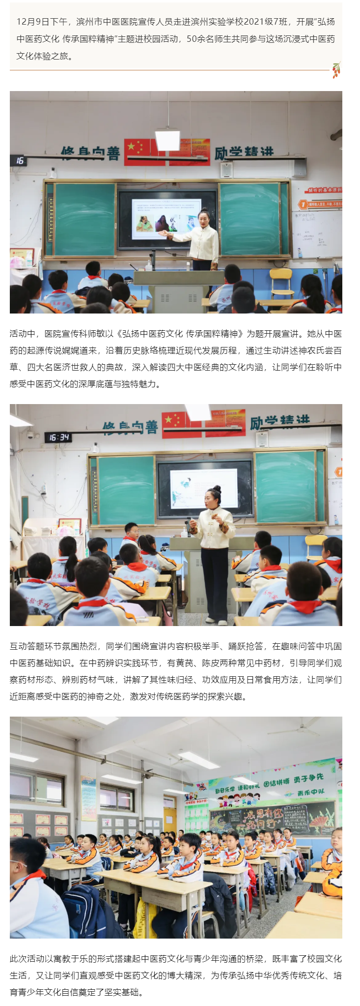 中医药文化进校园 国粹精神润童心——滨州市中医医院走进滨州实验学校开展主题活动