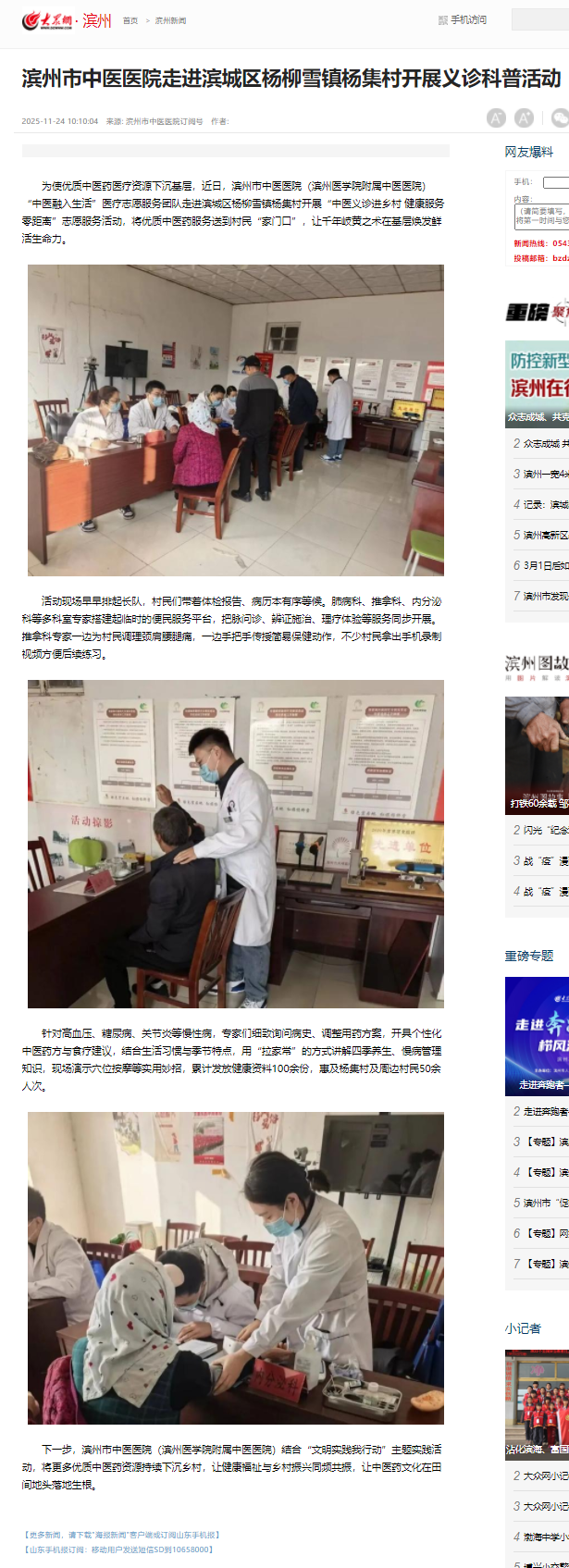 【大众网】滨州市中医医院走进滨城区杨柳雪镇杨集村开展义诊科普活动