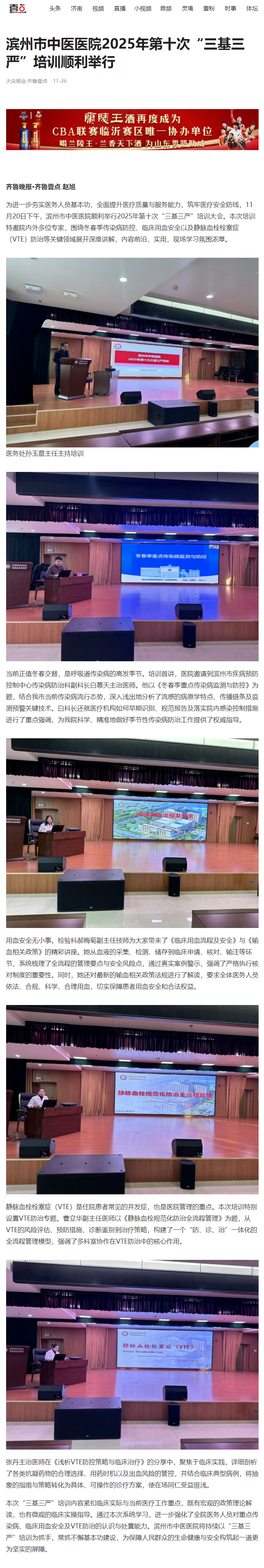 【齐鲁壹点】滨州市中医医院2025年第十次“三基三严”培训顺利举行