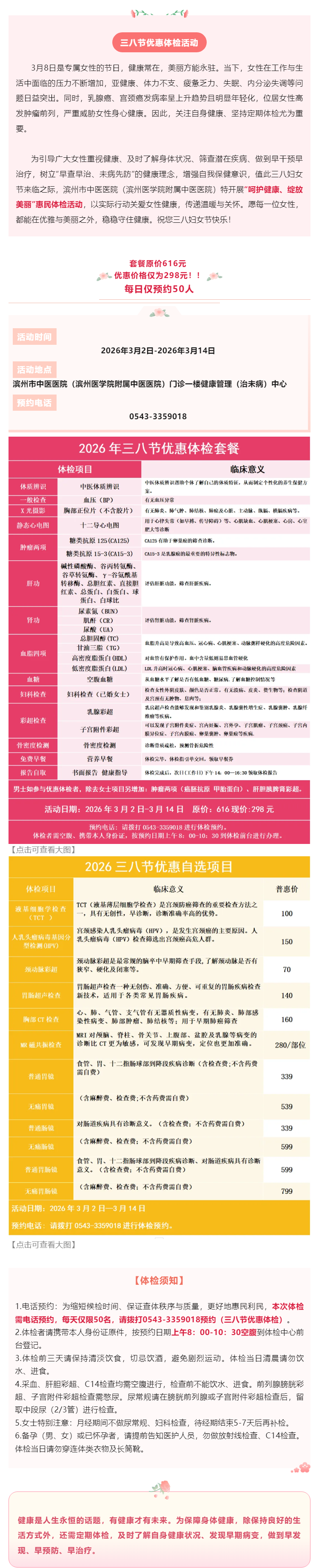 呵护健康,绽放美丽 | 滨州市中医医院(滨州医学院附属中医医院)三八节优惠体检活动温情开启!