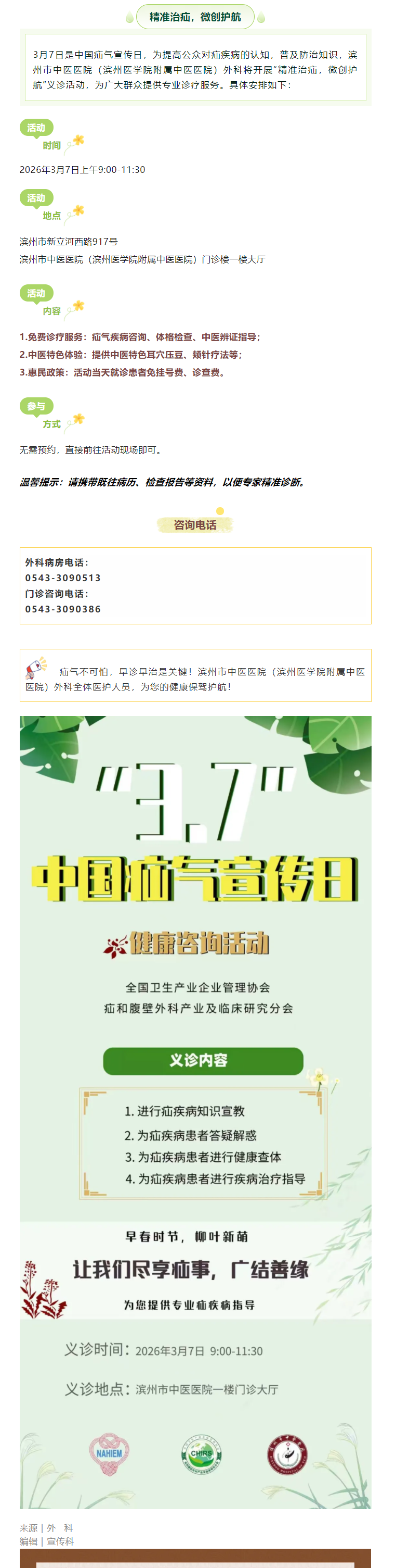义诊预告 | 滨州市中医医院(滨州医学院附属中医医院)将于3月7日开展“中国疝气日”专家联合义诊科普活动
