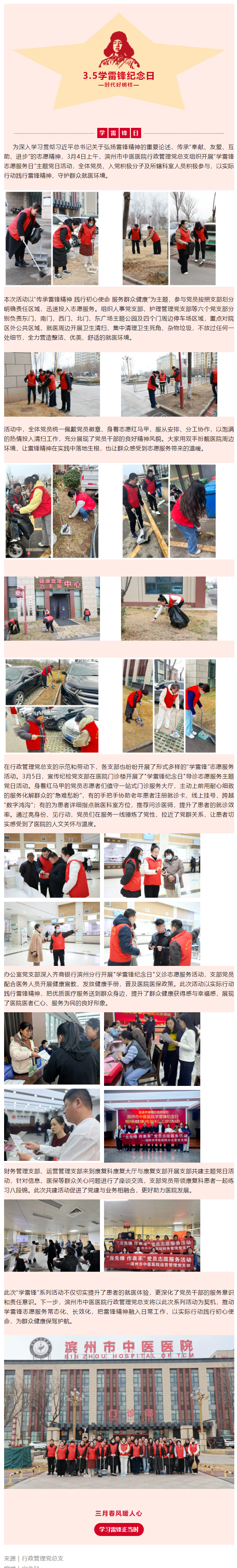 滨州市中医医院行政管理党总支组织开展“学雷锋志愿服务日”主题党日活动