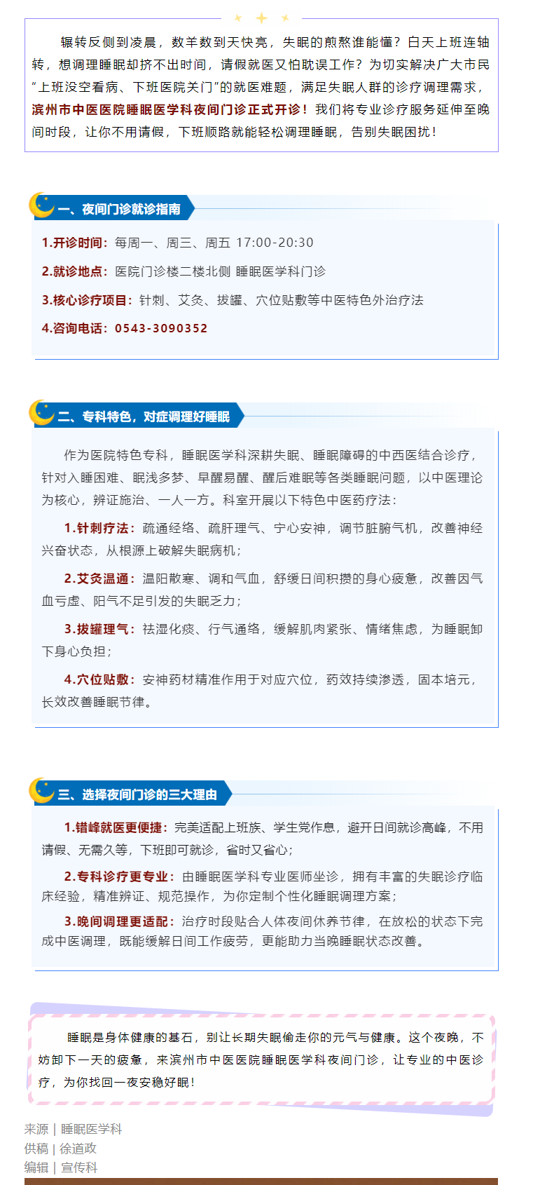 下班也能看诊!滨州市中医医院睡眠医学科夜间门诊正式开诊