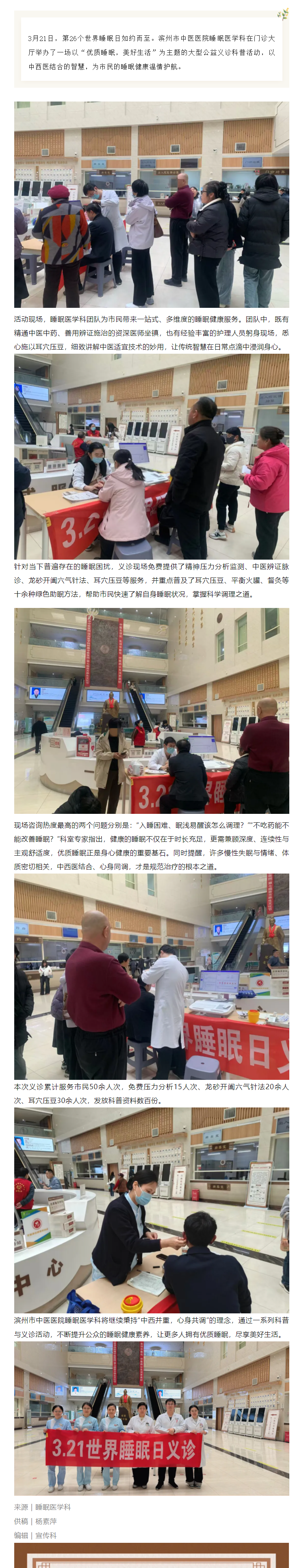 优质睡眠 美好生活——滨州市中医医院成功举办世界睡眠日公益义诊科普活动