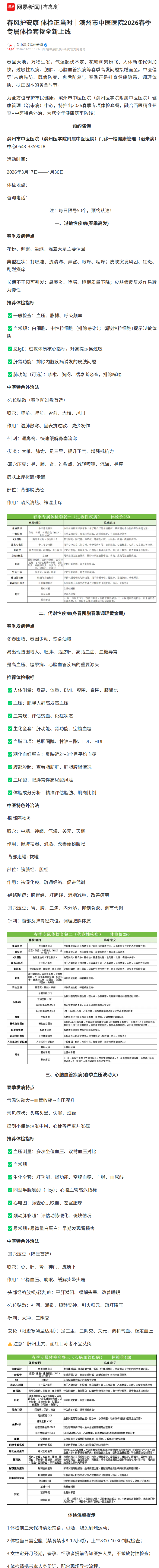 【鲁中晨报滨州新闻网易号】春风护安康 体检正当时|滨州市中医医院2026春季专属体检套餐全新上线